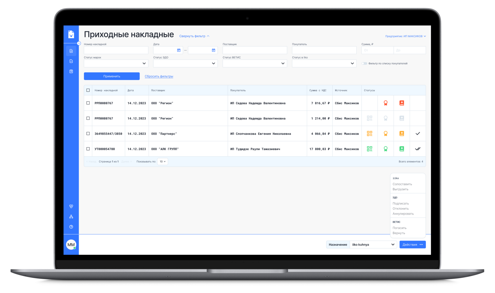 Наше приложение обеспечивает автоматический обмен данными между системой iiko и электронным документооборотом, что значительно ускоряет и упрощает бизнес-процессы